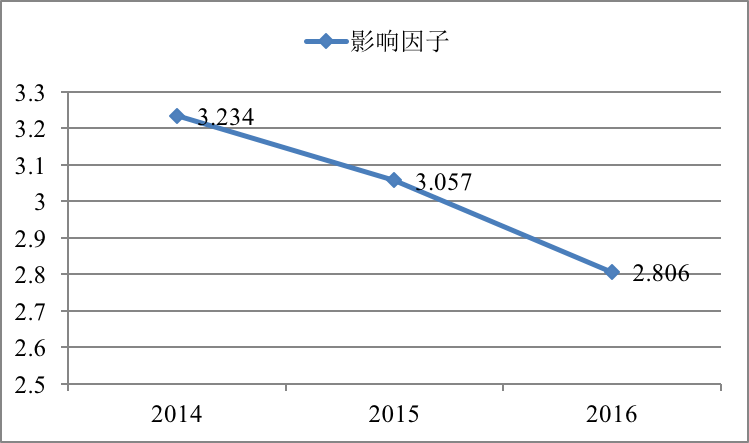 图1 2014~2016年PLOS ONE影响因子