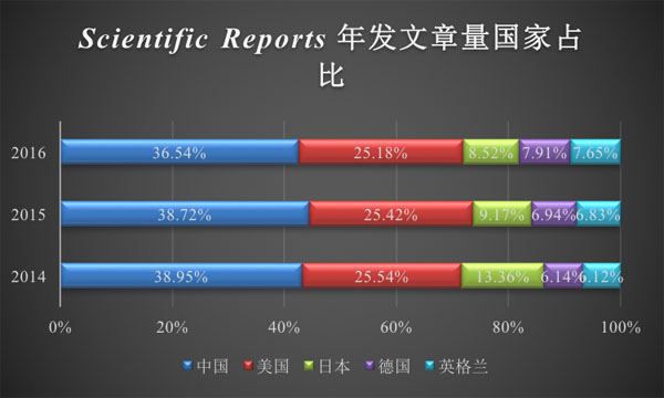Scientific Reports创刊于2011年,作为Nature出版旗下子刊,该刊目前由Nature-Springer出版集团在线出版发行。作为一本OA期刊,Scientific Reports主要刊载有关自然科学和临床科学的原创性研究结果,内容覆盖生命科学、物理、化学、地球科学等诸多领域。主要栏目为论著,综述、病例报道、通信类文章等一般不在考虑之列。和PLOS ONE一样,Scientific Reports对研究的伦理要求也很高,投稿时需在文中阐明相关伦理声明。此外,Scientific Reports对研究中数据的可利用性也有要求,比如需要上传论文原始数据、原始的Western blotting图作为附加文件(Supplementary file,且为PDF格式文件)等。Scientific Reports的主要审稿要求是“Scientifically valid and technically sound(科学有效和技术上可靠)”。投给Scientific Reports的每篇稿件通过出版社的形式审查后,都会由一位Editorial Board Member负责审稿的联络事宜(他们还需行使 final decision 的权力),这些Editorial Board Member都是各个领域的专家,所以,他们通常只挑选那些属于他们自己领域的论文来处理审稿事宜,他们遴选的审稿人也都是行业内专家。杂志从进入Editorial Board Member手中到第一次意见一般为45天,文章接收后,一般会在5天左右收到proof(校样),并且要求2天内返回proof。出版社收到校对后的proof后,会在一周内安排论文在线。目前,Scientific Reports的版面费为11200人民币。2014~2016年Scientific Reports影响因子分别为5.578、5.228和4.259(图3)。2014~2016年每年发表论文居前5位的国家见表2,2014~2016年每年发文量居前5的国家所占比例见图4。